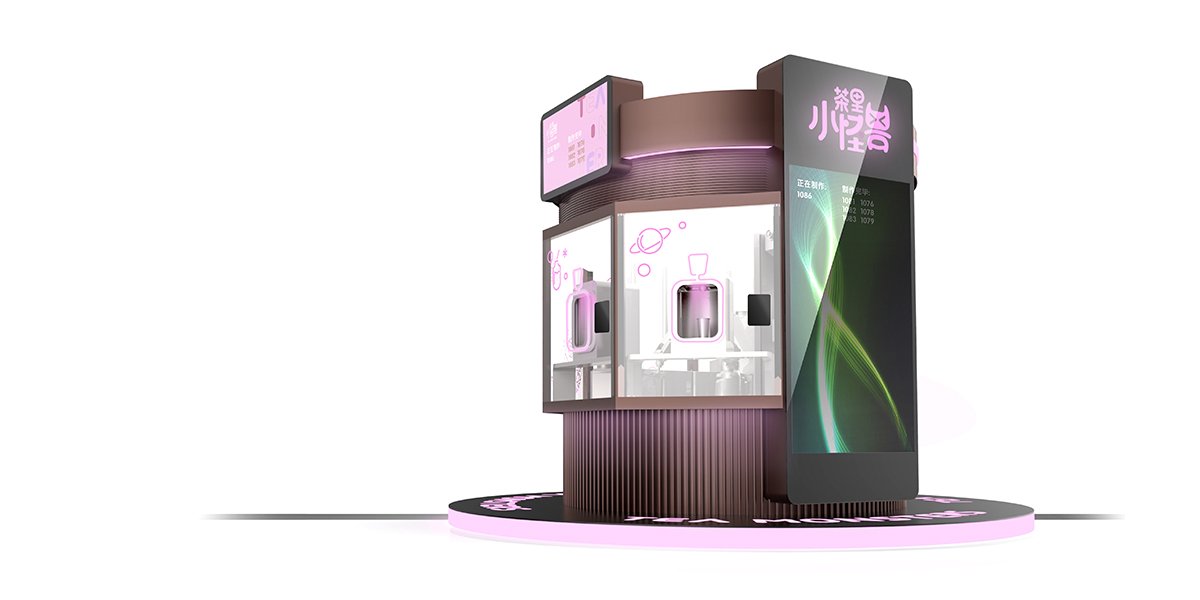 “茶里小怪獸”以為年輕人提供 24 小時全天候優(yōu)質(zhì)奶茶的夢想為出發(fā)點,打造一款自助奶茶站。